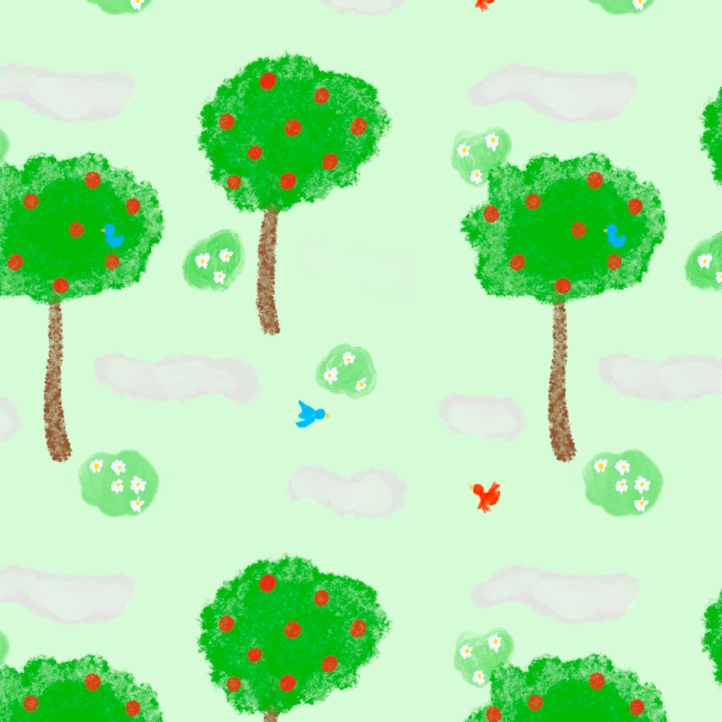 The daisies and green grass remind me off the linoleum flooring my Great-Grandma Birdie had in one of her guest bedrooms. It was a vibrant green with little white fences and barns.